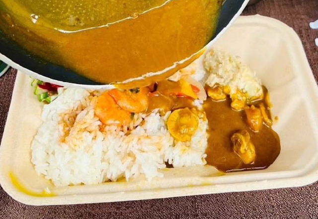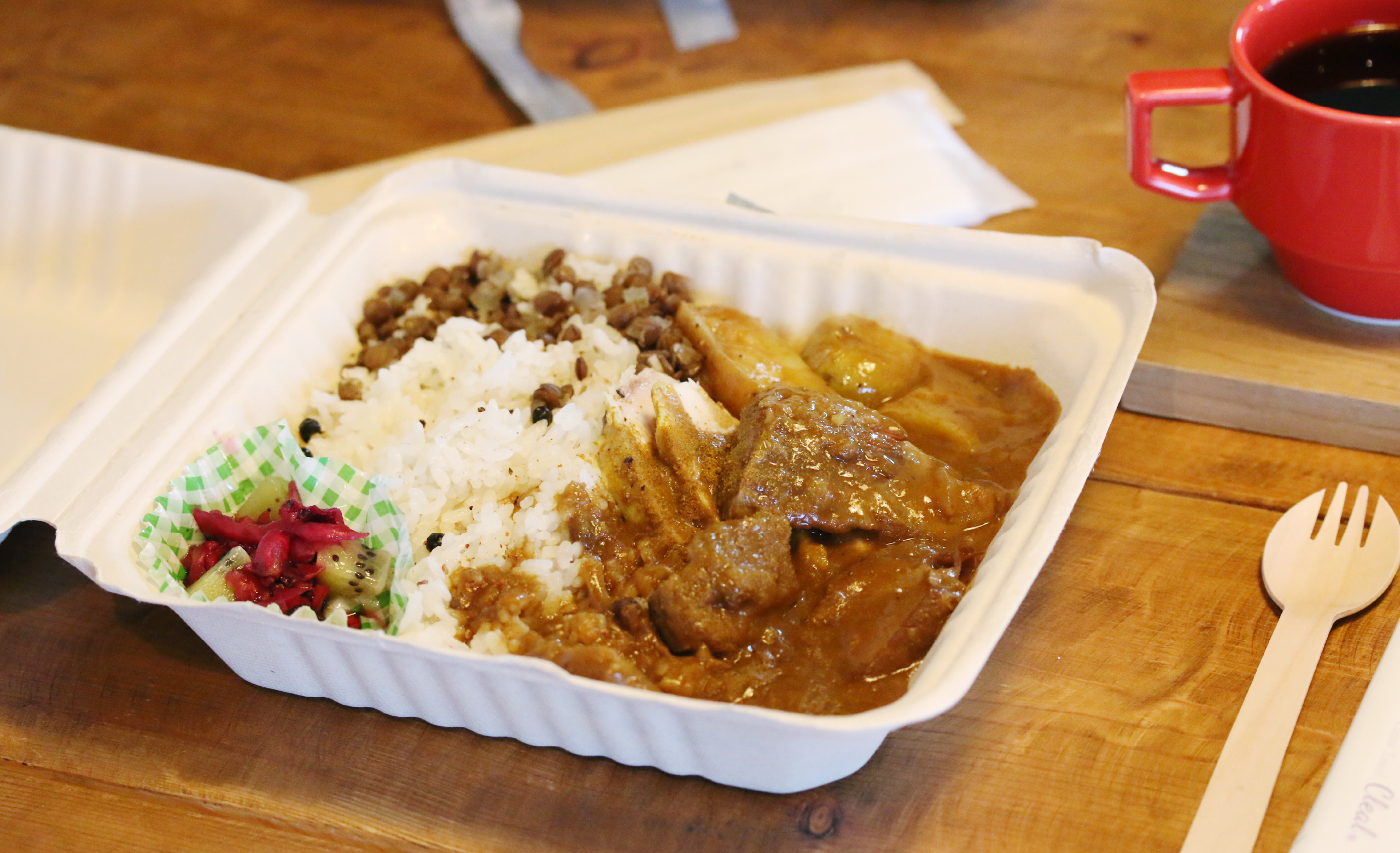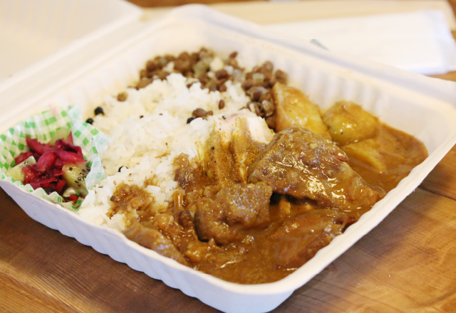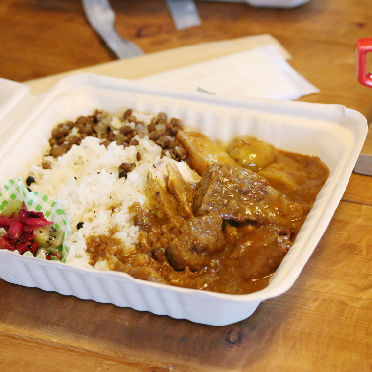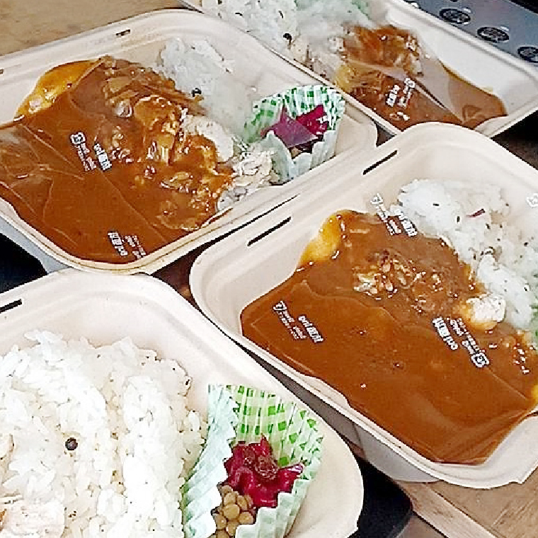 お⽶も100%中津産にこだわっており、お⽶にあうカレーライスとなっております。